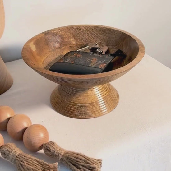 EarthNest Wooden Bowl with natural grain texture, perfect as a fruit bowl, candle holder, or versatile decorative storage for keys and everyday essentials.